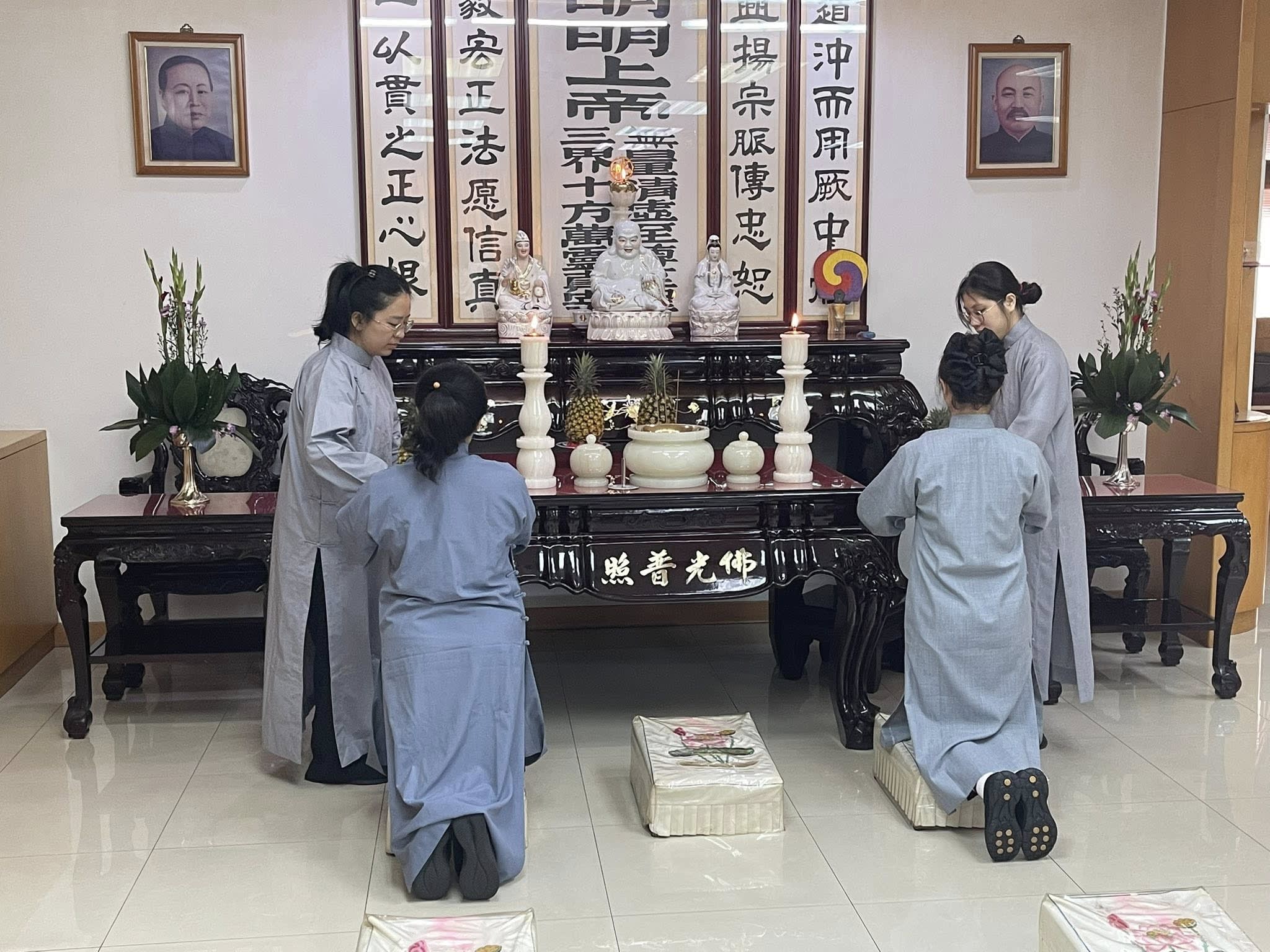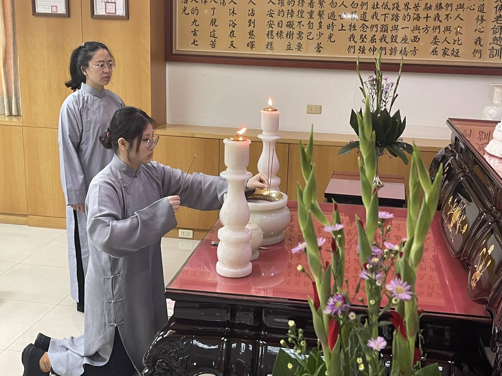 今日道一樹林佛堂班會邀請坤道青年前賢獻果,感謝何點傳師慈悲致詞鼓勵,班會前召開「道務會議」,由李壇主主持,並做道務報告與交通和服務的工作安排。第二節邀請何良純講師慈悲成全。題目:「修道與魔考」,前言:「在哪裡跌倒就在那𥚃躺好」,之後要爬起來繼續向前走(修道),修道會遇到什麼考驗?1、道考:道場中所發生的種種考驗。愈誠心修辦的人,考驗愈多。2、逆考:求道之後諸事不順,甚至在一夕之間家道中落,道場同修之間彼排斥,家人反對、生活艱鉅。3、順考:舉凡心中皆能順利達成,於不知不覺中起了高傲,怠墮之心,或增加了更多的脾氣毛病。4、顛倒考:舉凡求道後原本很富有,没多久却因種種事故變得貧困不堪;或原先很貧窮,突然之間成為暴發富,使你頓覺生活富裕了,人生沒什麽苦,不必修道了。5、人情考:親朋好友的苦勸,要你放棄修辦道以及吃素的意愿。6、天理考:上天給予的考驗,愈是至誠修辦,愈是考驗,隨時隨地上天借人借事考驗。感謝均毅兄弟、良萱姊妹、子珊姊妹等前賢輔導兒童班讀經、做藝術美勞。感謝二位陳太太、洪太太、王太太、吳太太以及素蕙前賢慈悲準備豐盛午餐。感謝諸位前賢參加護班會。